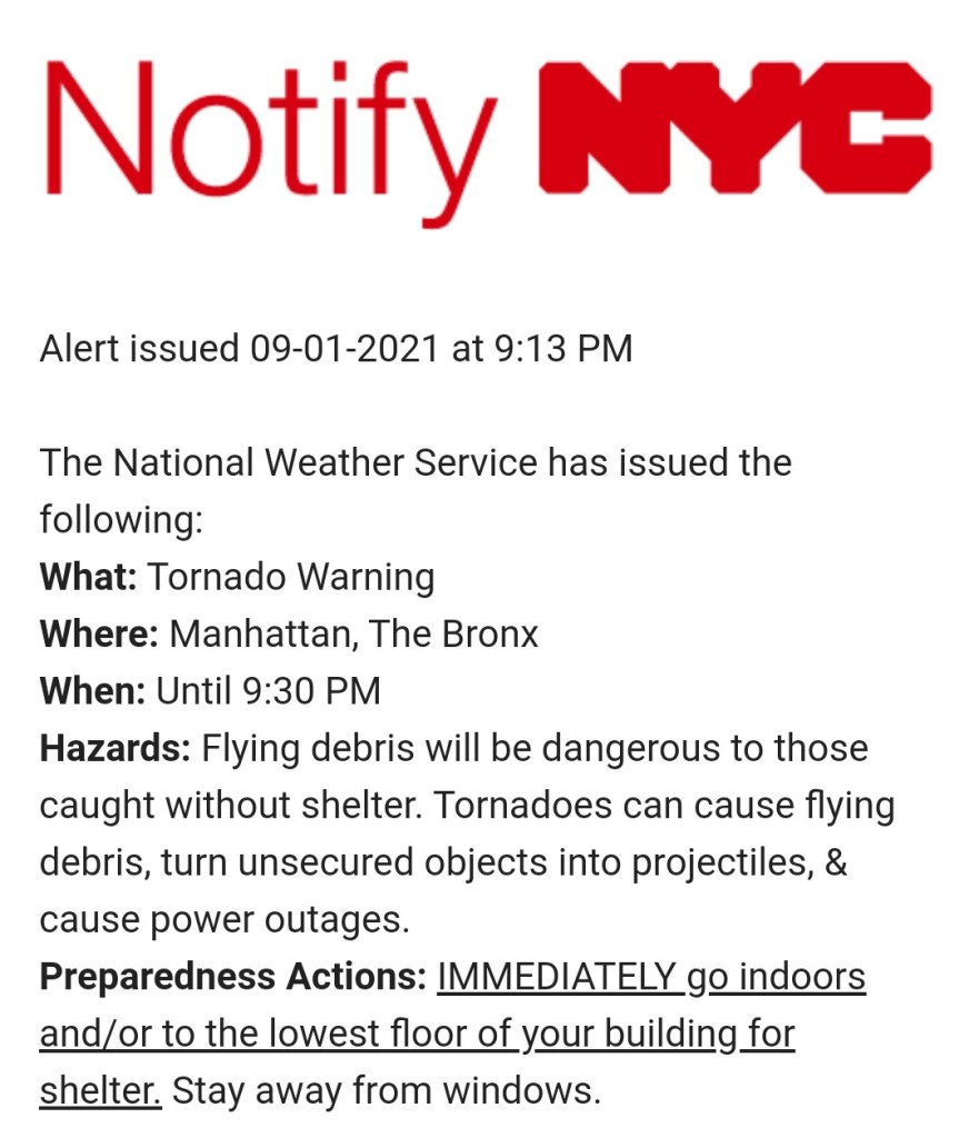 In de loop van de dag kreeg ik een aantal noodmeldingen over het weer, namelijk een tornado melding en een flash flood melding.
