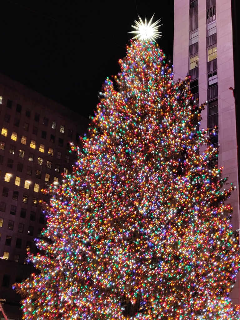 In de avond ben ik richting Rockefeller gegaan met Emily en Sydney om de Rockefeller tree te zien aangaan. Het was nog een hele opgave om er te komen. Verschillende straten waren gesloten en andere straten waren weer een richtingsverkeerd en weer andere straten kon je niet oversteken. We hebben half het aangaan van de lampjes gezien. Dit kwam doordat er een aantal bussen voor de boom stonden waardoor het zicht niet optimaal was.
