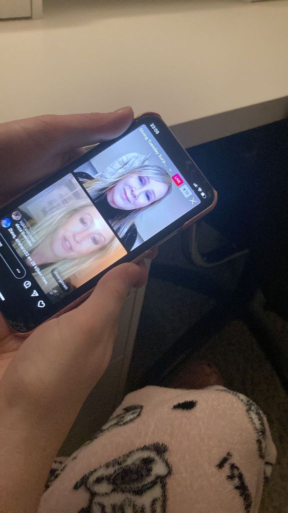 Foto van het thuisfront die de Live kijkt